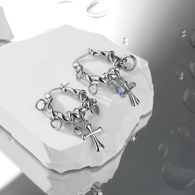 Cross pendant wrapped earrings