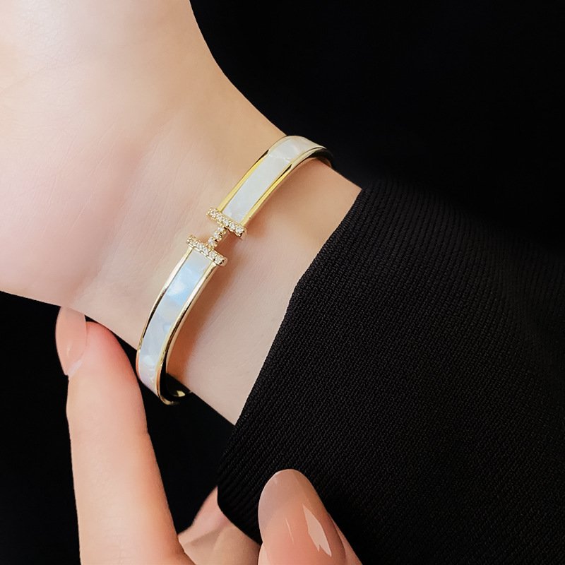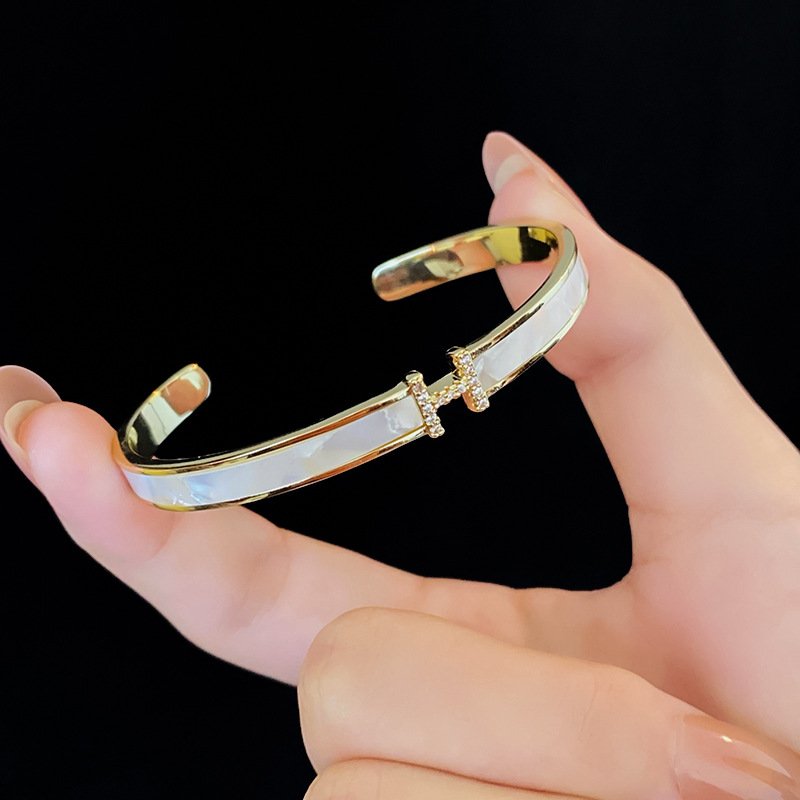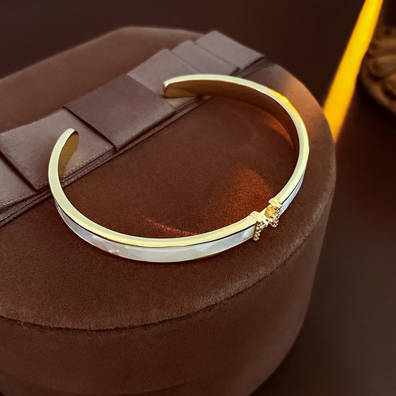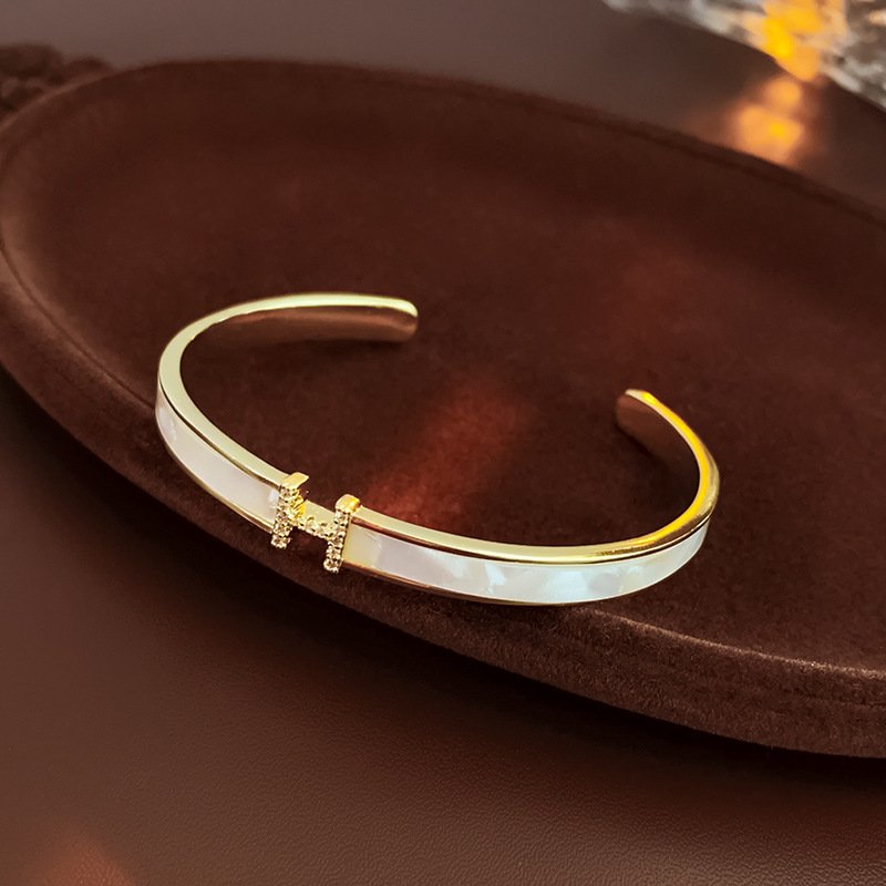 Featuring a minimalist “H” design that embodies modern aesthetics, symbolizing the romantic meanings of Hope and Harmony. The open-ended design effortlessly adapts to various wrist sizes, while the three-dimensional letter is elegantly set with sparkling zircon at its center, exuding the refined brilliance of high-end jewelry.