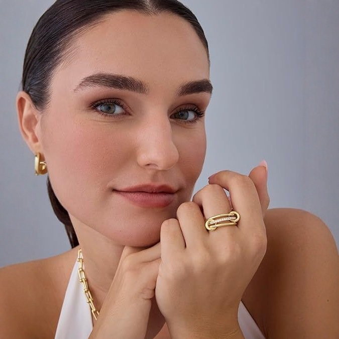 Whether paired with office attire for a polished look or worn on a date for a delicate touch, stacking three rings creates an elegant layered effect, while five rings make a bold fashion statement. The perfectly balanced width ensures both refinement and presence.