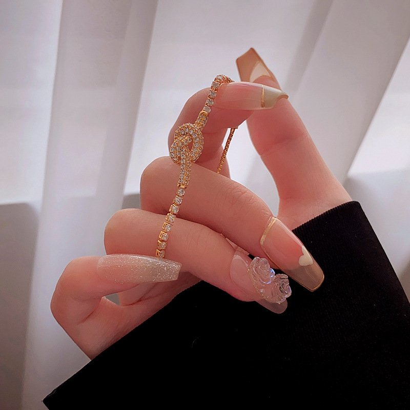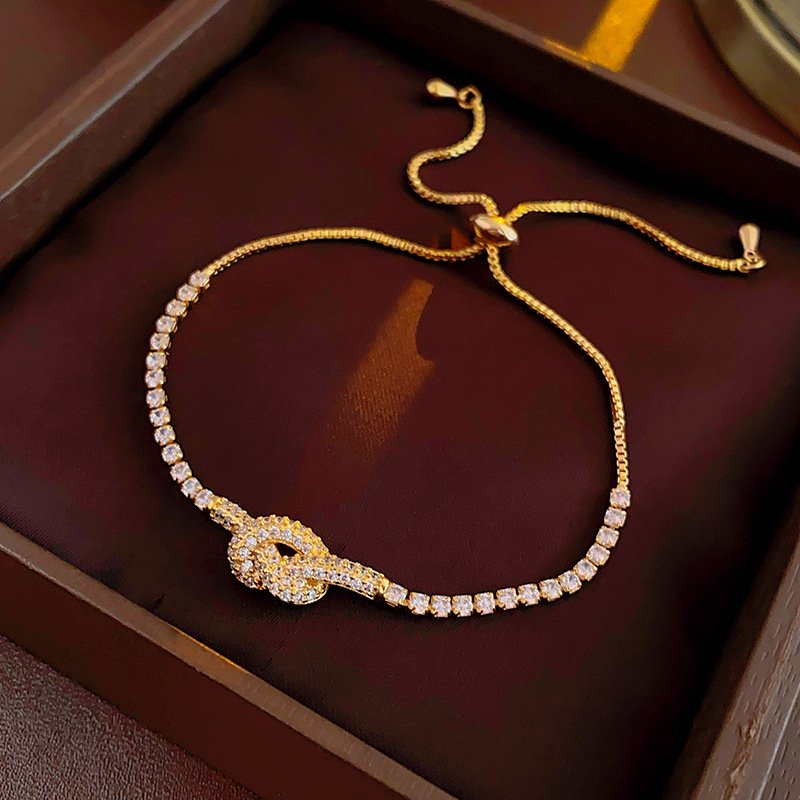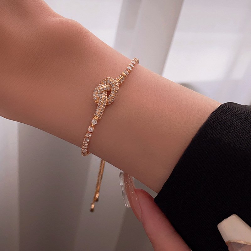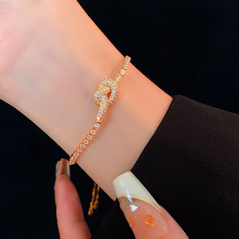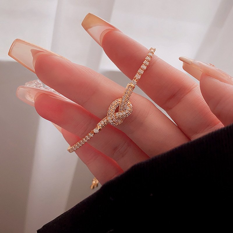 【Cubic Zirconia Open-Knot Bracelet】✨ Weaving eternal vows with resilient copper gold, transforming brilliance into an unbreakable bond around your wrist!